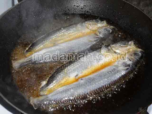 - Goreng ikan dengan bumbu sesuai selera